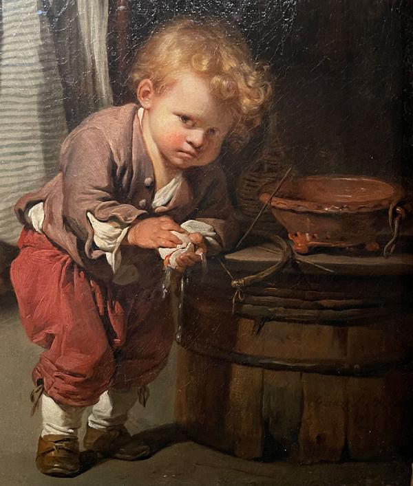 Jean-Baptiste Greuze, Les œufs cassés, 1756. Huile sur toile 73 x 94 cm © GrandPalaisRmn (Metropolitan Museum of art) / Malcolm Varon. Et détail.