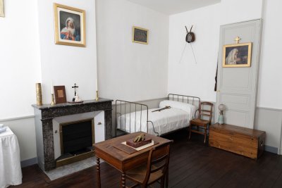 Loti ne manquait ni d’idées, ni d’amour du merveilleux pour décorer sa maison, la chargeant des centaines de kilos d’objets rapportés d’Extrême-Orient ou d’Afrique, modifiant constamment les pièces au gré de ses fantaisies, apposant le blason aristocratique qu’il s’est créé et ses portraits un peu partout... Seule sa chambre immaculée et monacale, avec un petit lit de fer et quelques images religieuses, contraste avec l’exubérance des autres pièces. Elle évoque aussi bien la vie spartiate du marin que l’austère foi protestante dans laquelle il a été éduqué. Pierre Loti aimait à s’entourer d’objets relatifs aux différentes religions monothéistes comme pour conjurer la mort, affirmant toutefois avoir perdu la foi à la mort de son frère ainé Gustave, emporté par la maladie à l’âge de 28 ans, en 1865.