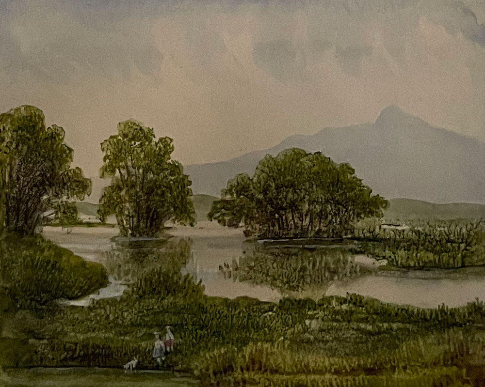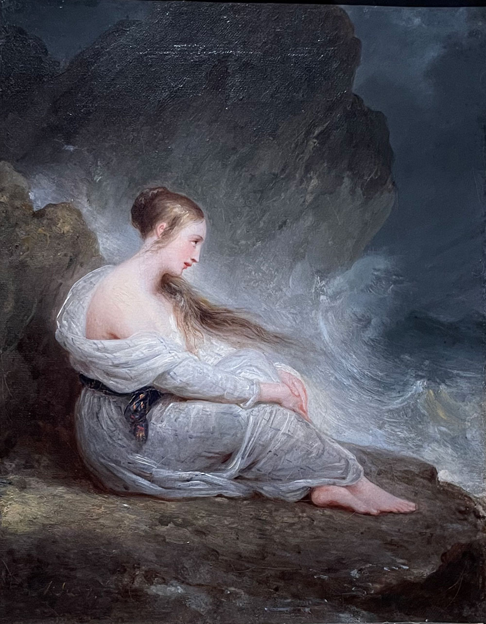 Organisé autour de quatre grands thèmes du romantisme (la nature et le paysage, le sentiment, la littérature et le fantastique), le parcours fait ensuite revivre témoins et célébrités de cette époque de création artistique de la première moitié du XIXe siècle, en musique, littérature, théâtre, peinture. Dans une scénographie qui restitue l’atmosphère d’un intérieur de l’époque, on y croise Frédéric Chopin, Pauline Viardot, Lamartine, Eugène Delacroix, Pierre Delorme, Pierre-Joseph Redouté…et surtout George Sand, figure emblématique du mouvement romantique, dont l’imagination prolifique avait aussi le talent de produire des paysages aquarellés, selon une technique qu’elle nommait « dendrite », en référence aux formes arborescentes apparaissant naturellement sur certaines roches. Des œuvres libres et poétiques d’une grande finesse, peu connues, et que l’on découvre dans une pièce entièrement dédiée à l’autrice de La Mare au diable, de Consuelo et de plus de soixante-dix autres romans, sans compter les pièces de théâtre et textes divers. Un portrait d’elle par Auguste Charpentier (1838) et en vitrine quelques bijoux et souvenirs transmis par sa petite-fille Aurore Lauth-Sand donnent un peu de vie à son souvenir.