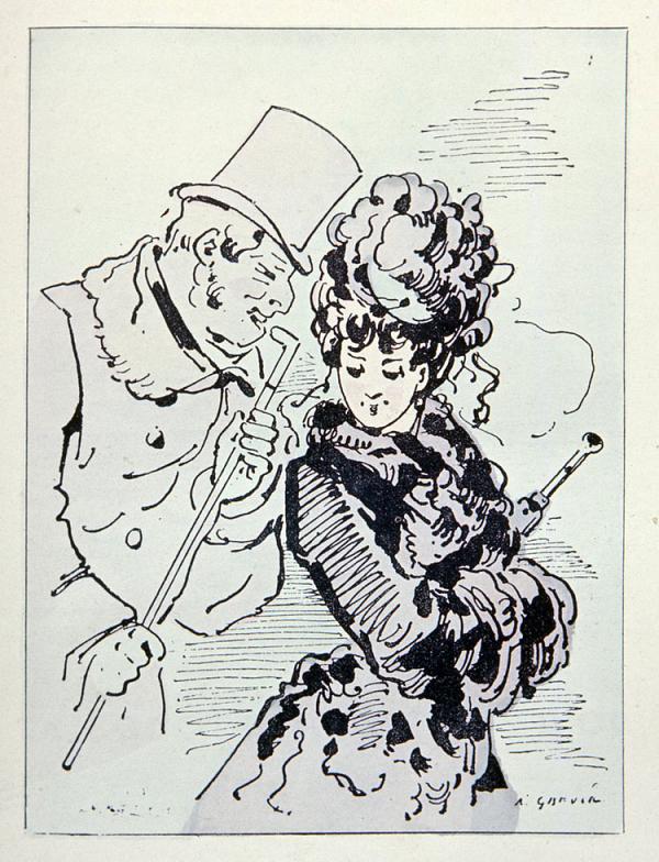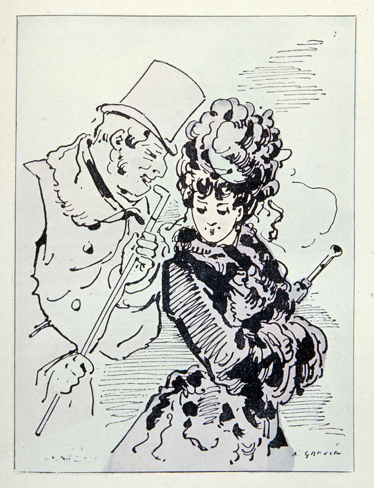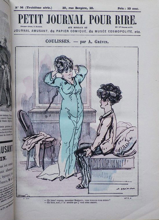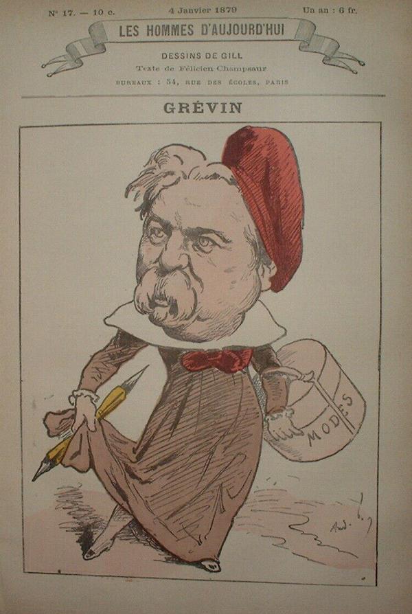 Né le 28 janvier 1827 à Épineuil dans l’Yonne, ce sont les savoureux dessins que cet employé des chemins de fer à la gare de Tonnerre s’amuse à croquer dans les coins des dossiers de l’administration ferroviaire qui révèlent un jour son talent. Alfred Grévin a 26 ans, désormais installé à Paris, il commence une carrière de caricaturiste pour Le Journal amusant, Le Petit Journal pour rire, La Caricature, Le Gaulois, Charivari…Sa silhouette type de la coquette parisienne devient une référence. « Grévin fut le poète de la Parisienne moderne, dont il sut, mieux que personne, fixer la piquante silhouette », écrira Sergines dans Les Annales politiques et littéraires. Pendant sa carrière Grévin accumulera plusieurs milliers de croquis dans ses cartons.