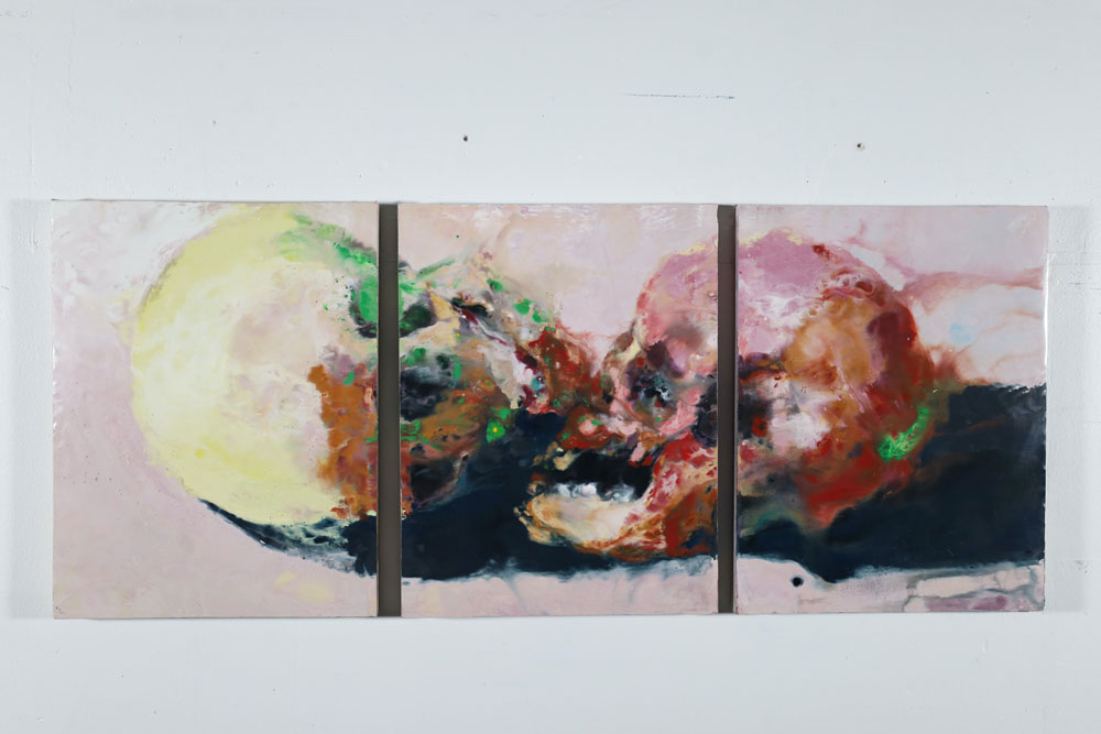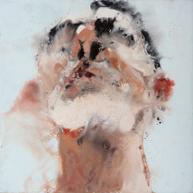 La mort n’est jamais loin de cet effacement annoncé, cette finitude que l’artiste représente à travers Memento mori et vanités, les crânes, le corps et ses organes (cœur, cervelle, sexe) mais aussi des carcasses d’animaux (impressionnante série de trente-six tableaux rassemblés dans une même pièce). Renouant aussi avec des motifs iconiques de l’histoire de l’art