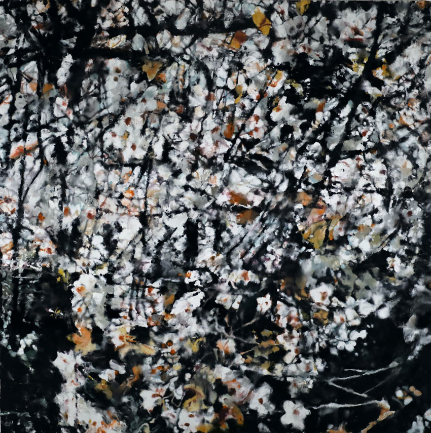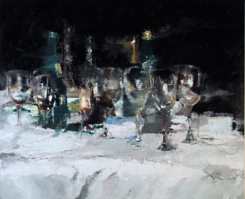 De cette confrontation au temps qui passe, jeu dialectique entre le souvenir et l’oubli, Cognée ajoute ces dernières années à son œuvre une dimension de critique sociale face aux dérives de la consommation et de la mondialisation : amoncellement de déchets de Grand Théâtre ou d’individus de Foule ou encore les paysages urbains vus du ciel comme une succession de cases vides. Pourtant Cognée s’apaise parfois, évoque le calme dans la tempête, invite à contempler la beauté du monde en contrepoint de son tumulte (Paysage, Forêt enneigée 1, Champ de coquelicots, Sous le soleil, tournesols n°1, La lumière vient des fleurs et le très récent La lune se lève sur la mer calme). On se croirait même revenu à un impressionnisme moderne ! Cette section est joliment intitulée « Temps suspendus ». Cognée aime aussi les livres et les écrivains, comme une échappée hors du réel trop étouffant et comme une façon de changer de formes d’expression avec le dessin et la gravure, ce que nous montre une grande vitrine finale où sont exposés des livres d’artistes ou livres-objets qu’il a illustrés ou cosignés. Le temps des livres est une belle force tranquille.